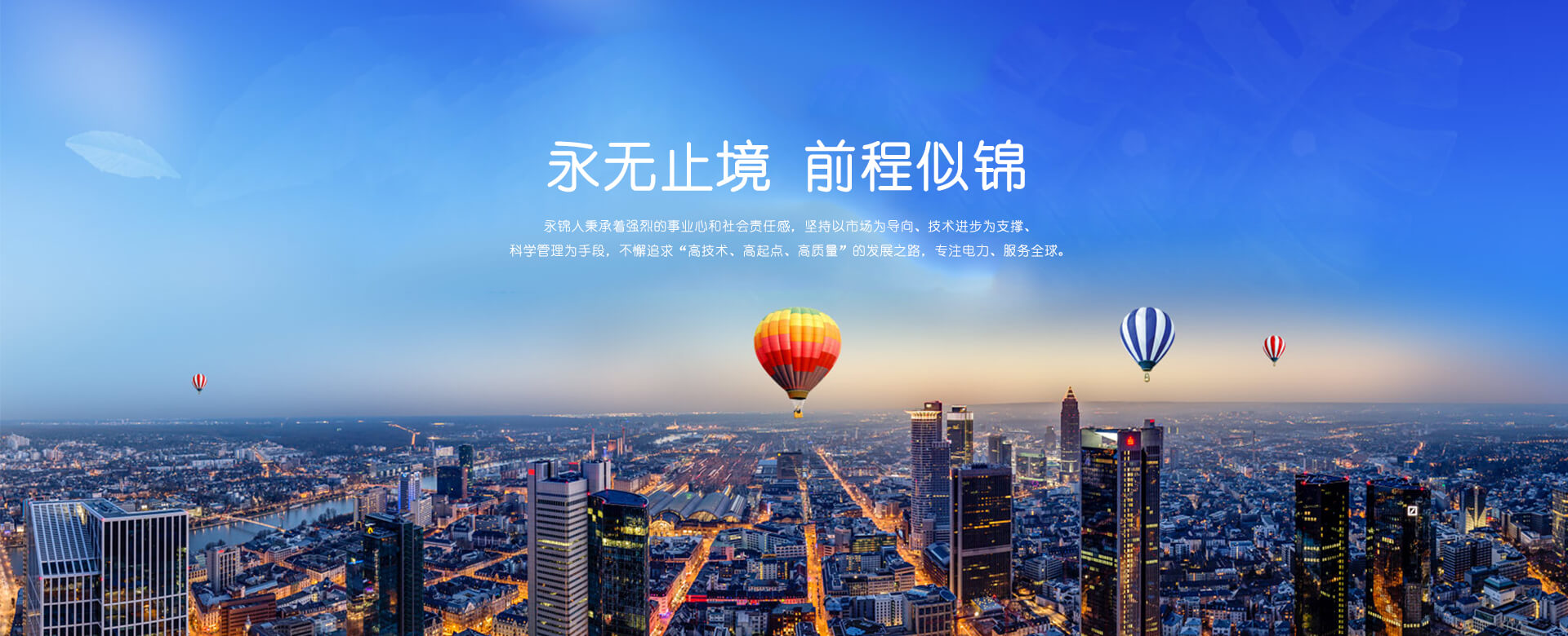 “永无止境、前程似锦”——永锦人秉承着强烈的事业心和社会责任感,坚持以市场为导向、技术进步为支撑、科学管理为手段,不懈追求“高技术、高起点、高质量”的发展之路,专注电力、服务全球。
